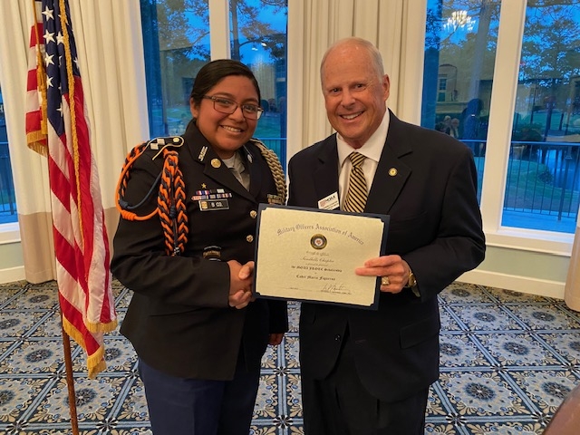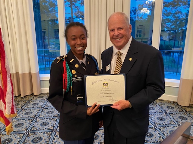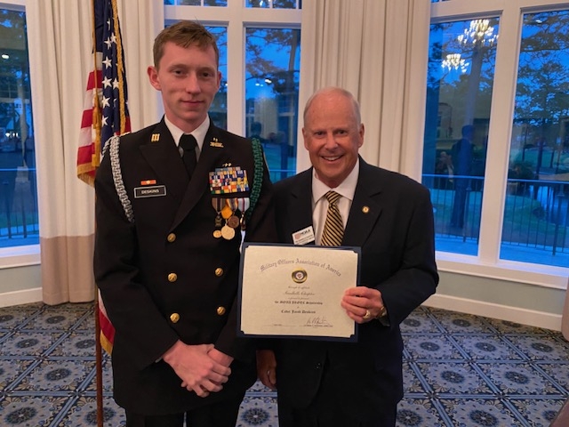 The following cadets were recipients of scholarships in the amount $1,500 each: Cadet Angelina Sassano, Pinecrest High School Air Force JROTC; Cadet Jacob Deskins, Union Pines High School, Navy JROTC; Cadet Maria Figueroa, Southern Lee High School Army JROTC; Cadet Clay Mauldin, Scotland High School Army JROTC; Cadet Aishah Campbell, Anson County High School Army JROTC; Cadet Andrea Ellerbe, Richmond Senior High School Army JROTC; and Cadet Garrett Richardson, Montgomery Central High School Air Force JROTC.